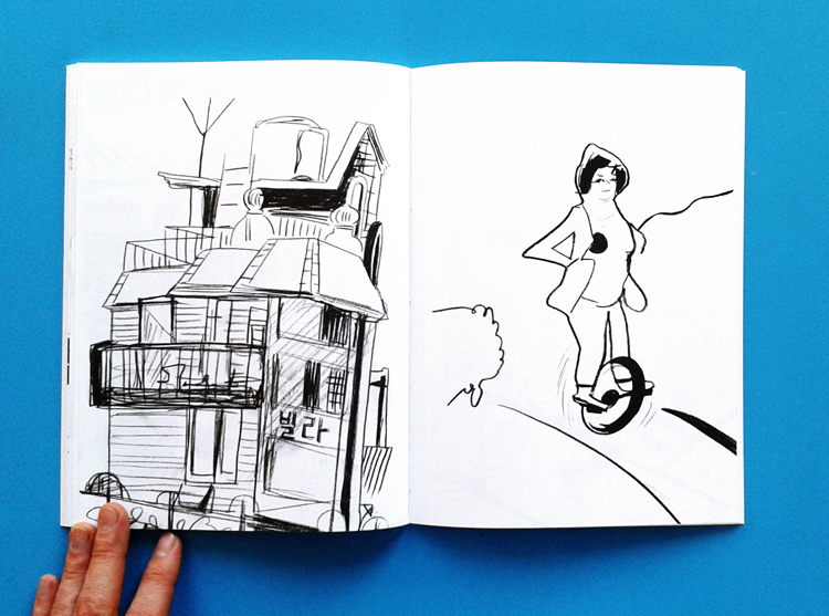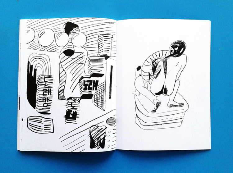 Von 2014 bis 2015 verbrachte ich ein Jahr in Südkorea. Zwischen Beobachtung und Imagination zeigt das Buch Eindrücke aus Seoul und Hinterland, sowie Portraits mit einem besonderem Fokus auf vorgefundene Gesten des Alltags. Ob auf den Bergen Seoul oder zwischen Oktopussen auf dem Fischmarkt – die Zeichnungen sind spontan in diversen Situationen während meines Aufenthalts entstanden.